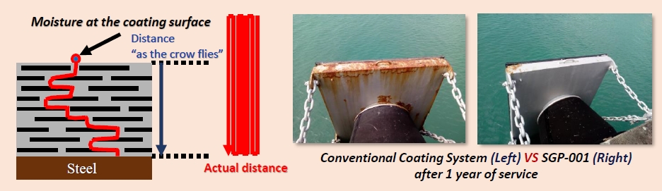– Money and time saving: less surface preparation, less coating and curing time, better performance compared with conventional coating system and the same DFT.