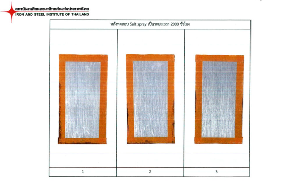 – No rust found after 2,000 hours of salt spray (fog) test (ASTM B 117 ) @DFT 150 micron